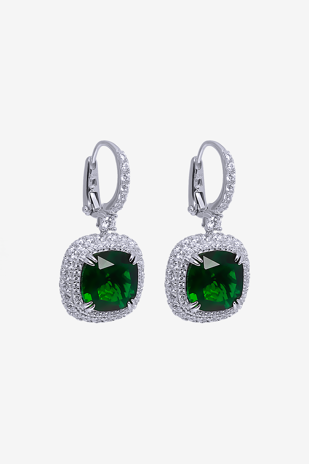 Big and bold Earrings are always needed. These beautiful earrings features green quartz with white zirconia gems studded all round. This magnificent piece stands out and makes a statement.