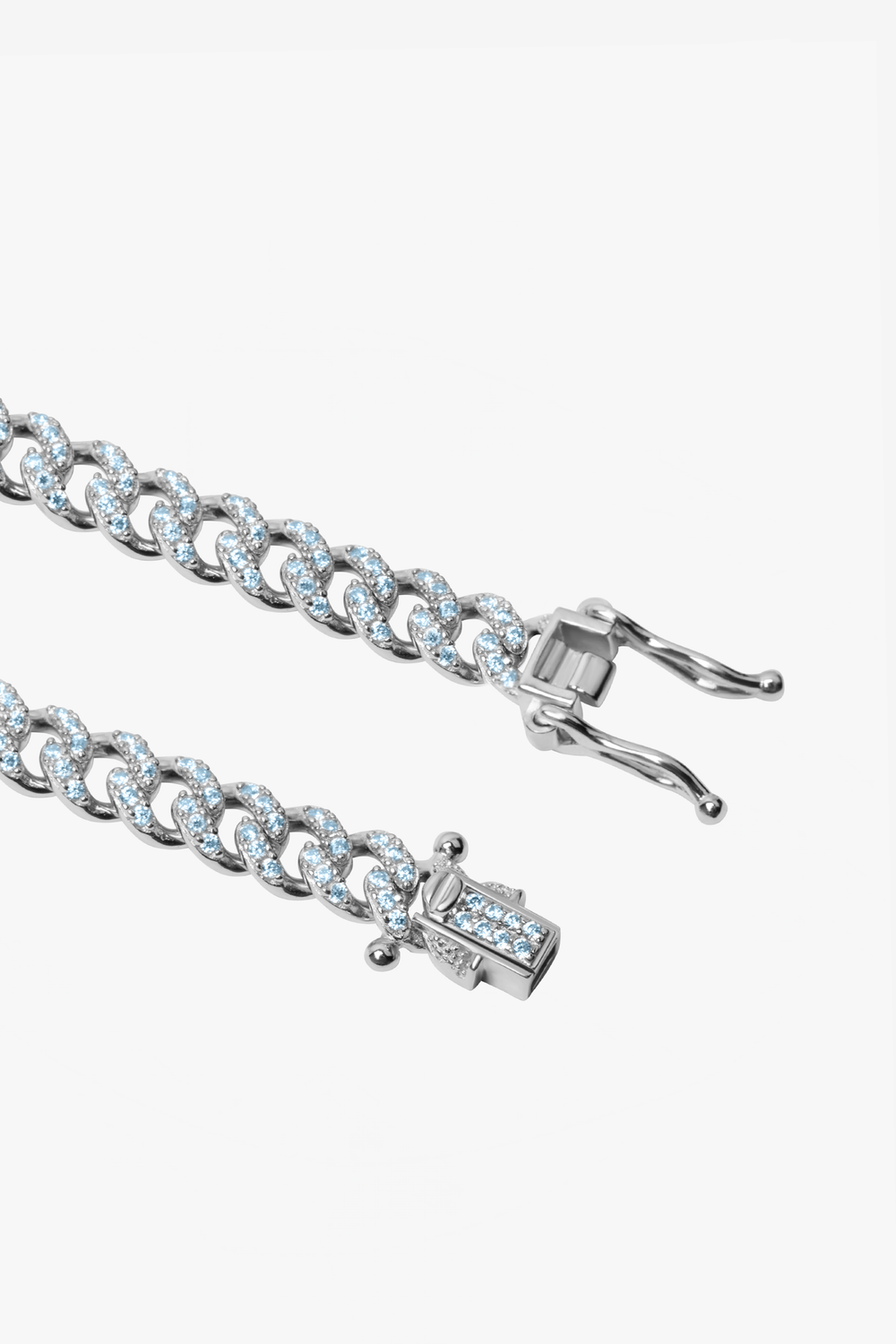 The classic Miami Cuban bracelet. Pure 925 sterling silver, Iced out with white zirconia gems for that extra attention to detail and dazzle effect.